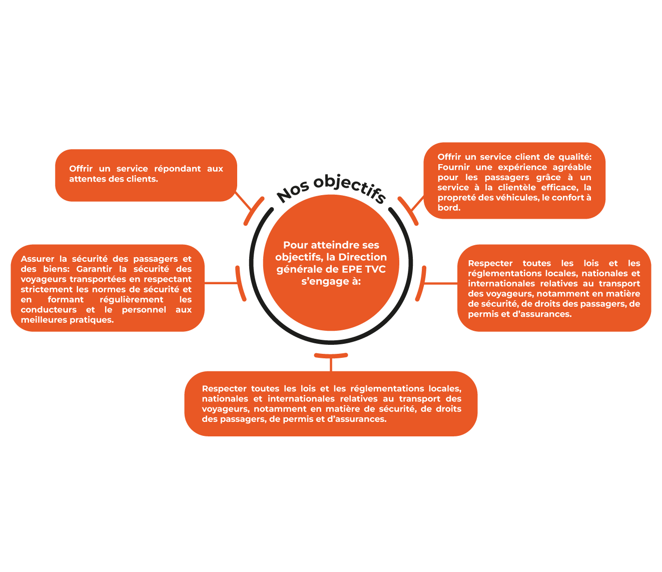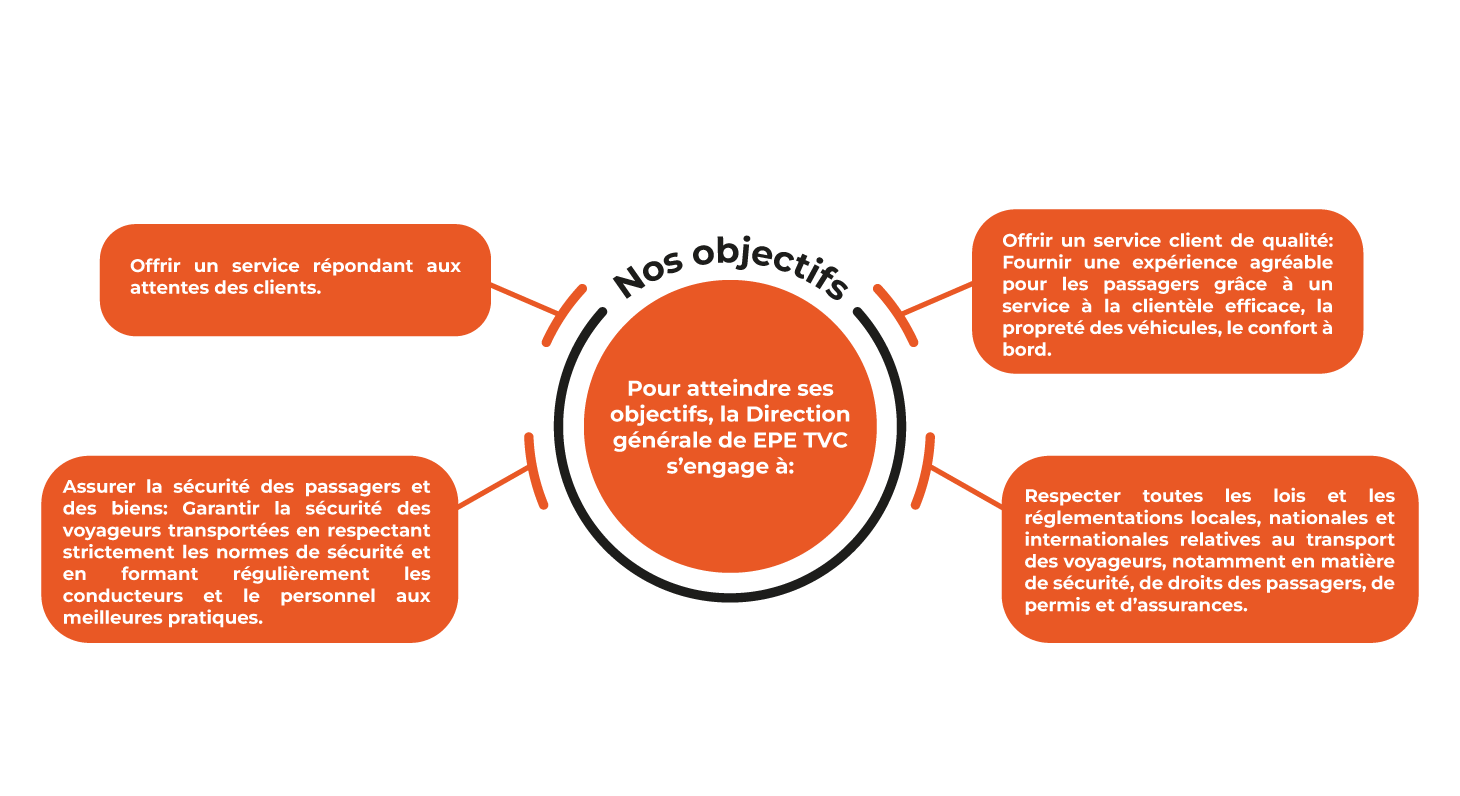 - Offrir un service client de qualité: Fournir une expérience agréable pour les passagers grâce à un service à la clientèle efficace, la propreté des véhicules, le confort à bord.